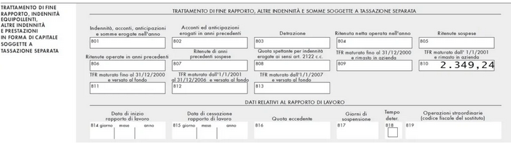 Si può trovare la cifra parziale anche nella busta paga, ma per controllare quella annuale si deve aspettare la ricezione del CU, generalmente inviata in inizio primavera o fine inverno. All’interno della certificazione unica CU, bisogna considerare i punti del modello ordinario Cu da 801 a 920, nel quadro titolato “Tfr, indennità equipollenti, altre indennità e prestazioni in forma di capitale soggette a tassazione separata”.