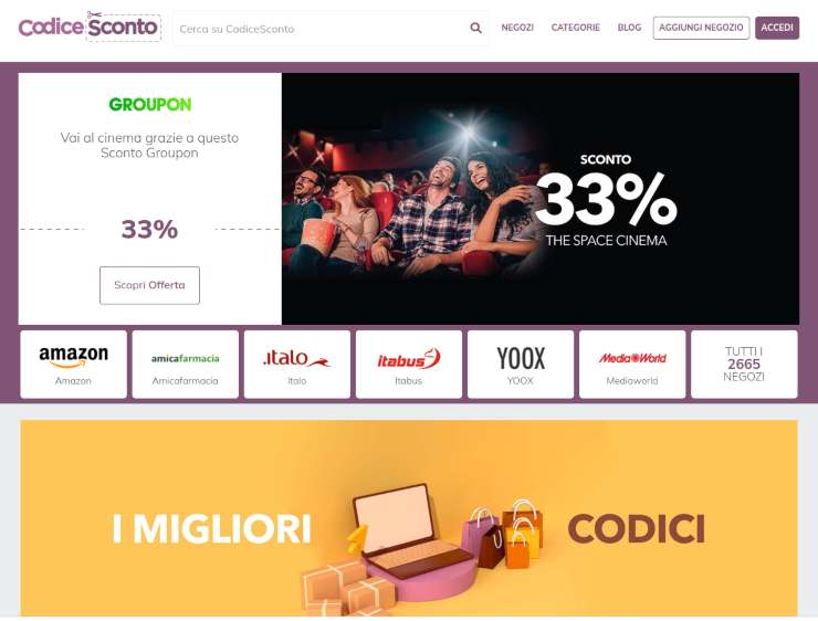 Codice Sconto esiste sotto forma di app vera e propria e di sito a seconda di come sia più comodo per gli utenti sfogliare le offerte che sono presentate divise per negozio e per scadenza. C’è, per esempio, una sezione dell’app e del sito dedicata ai buoni spesa e ai codici sconto che stanno per scadere e che dovete quindi sbrigarvi ad utilizzare. Il sistema di Codice Sconto è molto comodo anche perchè, una volta trovato lo store o il negozio che vi interessa propone anche codici di negozi simili o chge riguardano prodotti complementari.