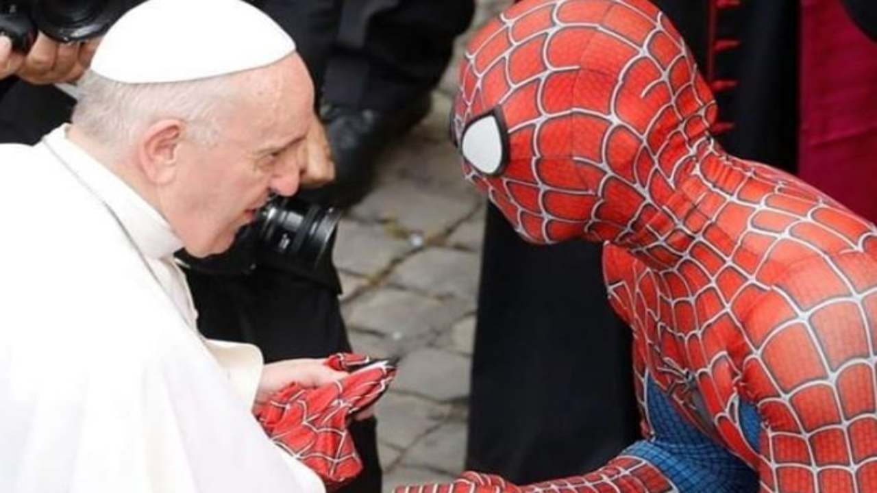 Uomo ragno in udienza dal Papa. Quanto costa un vestito da Spiderman?